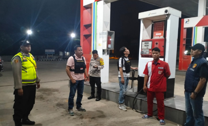 Kanit Reskrim Polsek Lempuing IPDA Haryanto SH bersama anggota melakukan patroli dan memberikan imbauan kepada petugas SPBU agar tidak melayani penimbunan BBM dengan modus ‘ngecor’ kendaraan tangki modifikasi.