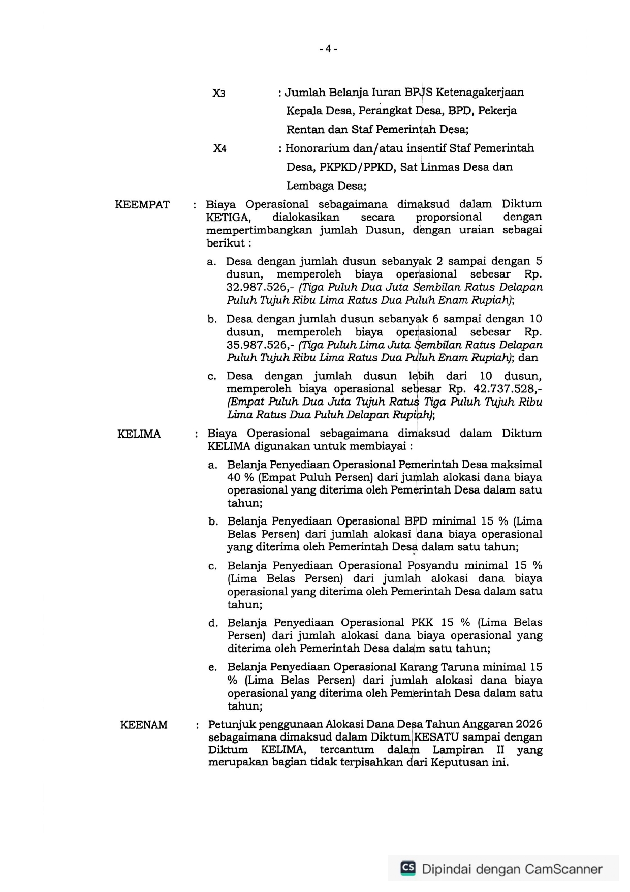Sementara itu, SK standar biaya umum desa tahun anggaran 2026 mengatur batasan serta ketentuan biaya yang dapat digunakan dalam setiap kegiatan desa. Standar biaya tersebut disusun agar penggunaan anggaran desa lebih efisien, terukur, dan sesuai dengan ketentuan peraturan perundang-undangan.