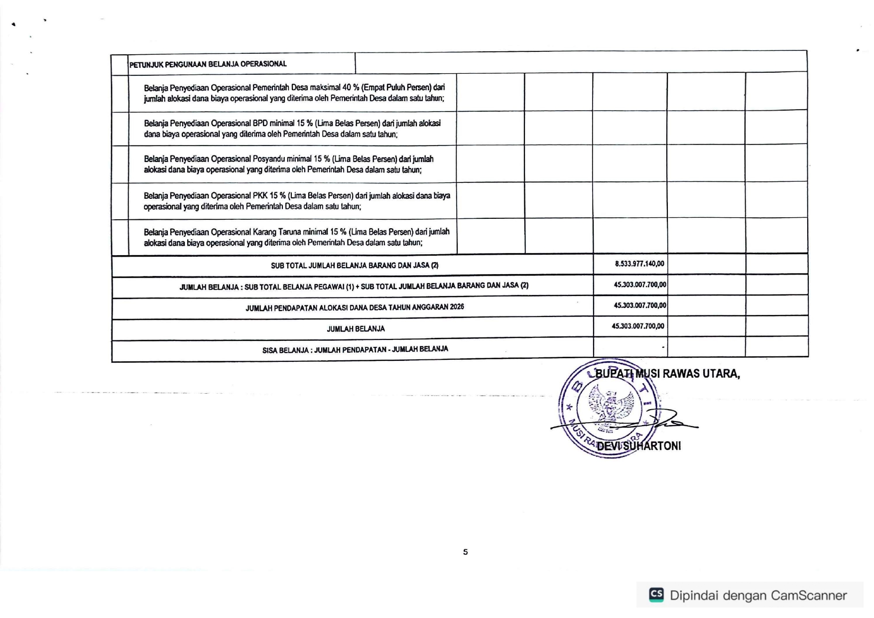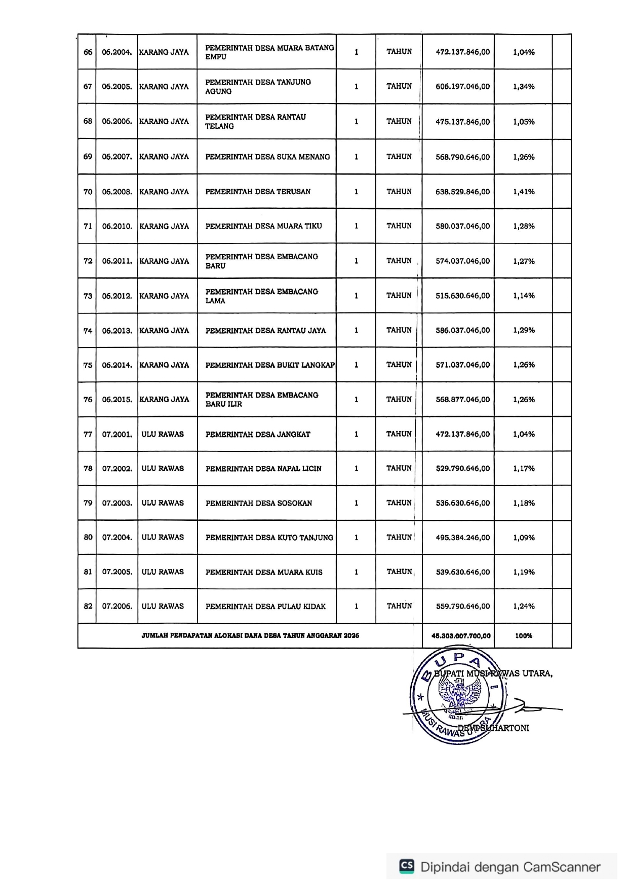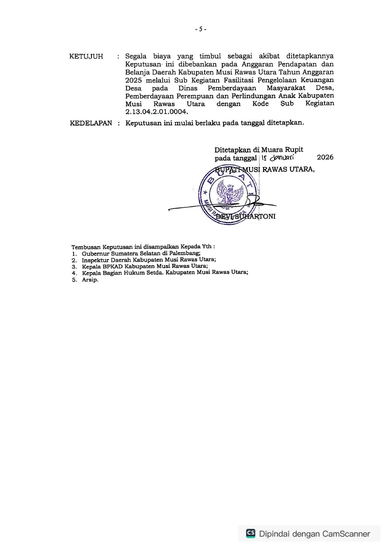 Dengan ditetapkannya tiga SK tersebut, Pemerintah Kabupaten Musi Rawas Utara berharap seluruh desa dapat menyusun dan melaksanakan APBDes tahun anggaran 2026 secara tepat waktu, sesuai regulasi, serta berorientasi pada kebutuhan dan kepentingan masyarakat desa.