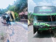 Mobil Tangki Diduga Angkut Minyak Ilegal Tabrak Bus Pariwisata di Bayung Lencir
