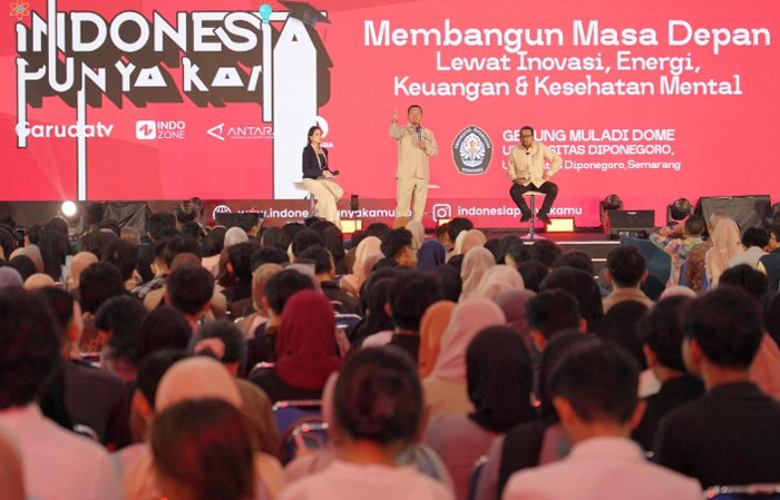 Acara Indonesia Punya Kamu merupakan inisiatif Garuda TV dengan tema ‘Membangun Masa Depan Lewat Inovasi, Energi, Keuangan, dan Kesehatan Mental’. Ratusan mahasiswa tampak memenuhi Muladi Dome UNDIP untuk mendengarkan pemaparan dari Menteri Nusron. (*)