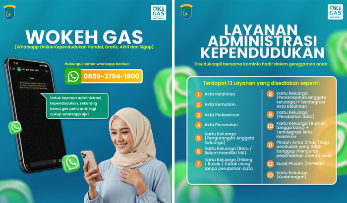 Kepala Disdukcapil Kabupaten OKI Hendri SH menerangkan, WOKEH GAS dirancang sebagai solusi praktis di tengah kebutuhan masyarakat akan pelayanan yang cepat dan efisien. Cukup menggunakan aplikasi WhatsApp, masyarakat sudah dapat mengakses berbagai layanan administrasi kependudukan secara daring.