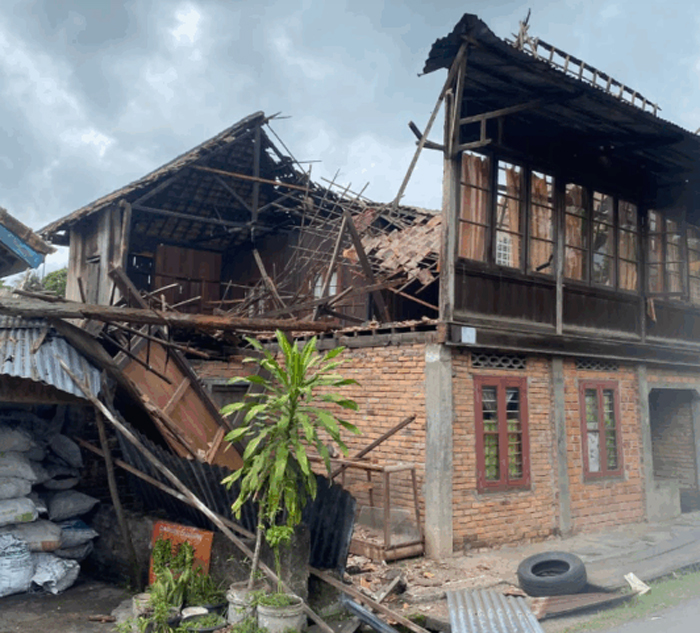“Rumah ini memang sudah lama condong, tapi siang ini langsung ambruk karena hujan dan angin kencang,” ujarnya.