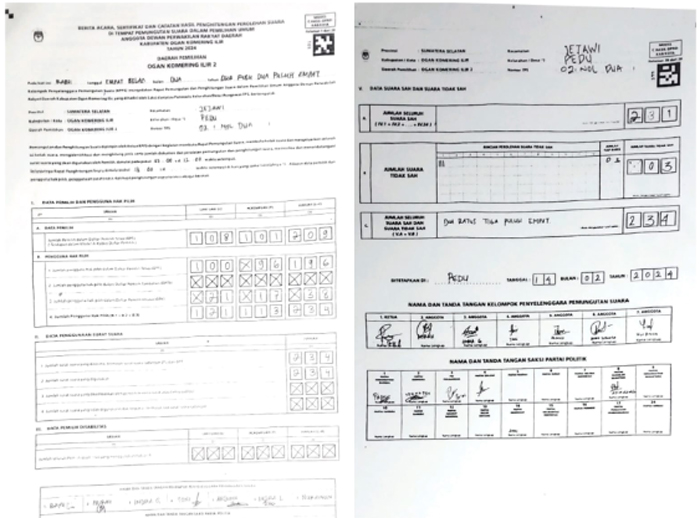 OKI, BERITAANDALAS.COM – Dugaan terjadinya penggelembungan suara hasil Pemilu 2024 terjadi di Desa Pedu Kecamatan Jejawi Kabupaten Ogan Komering Ilir (OKI).