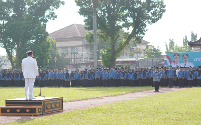 Hal tersebut disampaikan dalam upacara peringatan HUT Otda ke-30 yang digelar di Lapangan Kantor Bupati OKI, Senin (27/4/2026).