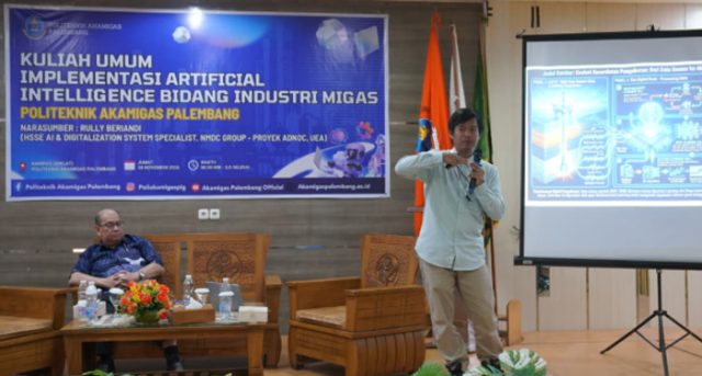 PALEMBANG, BERITAANDALAS.COM – Politeknik Akamigas Palembang menggelar kuliah umum bertema ‘Implementasi Artificial Intelligence di Bidang Industri Migas’, bertempat di aula utama kampus, Jumat (28/11/2025).