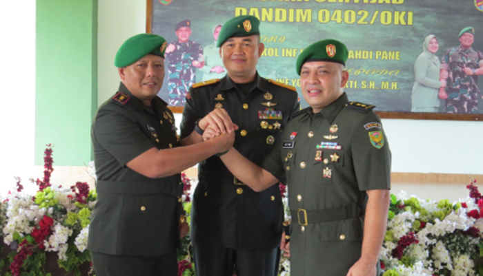 Hari ini dilaksanakan serah terima jabatan Dandim 0402/OKI-OI dari Letkol Inf. Irsyad Mahdi Pane kepada Letkol Inf. Yontri Bhakti SH MH.