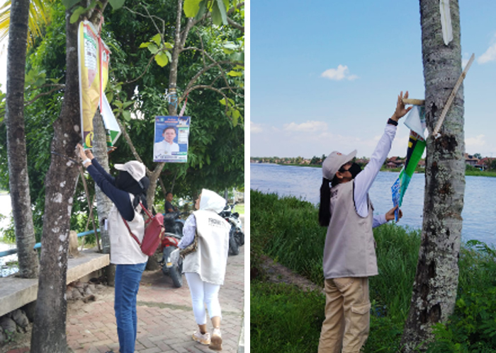 Anggota PTPS TPS 01 Kelurahan Mangunjaya, Leni Marlina mengatakan, pihaknya bersama PKD melakukan giat pelepasan atribut kampanye yang bertebaran di Kelurahan Mangunjaya.