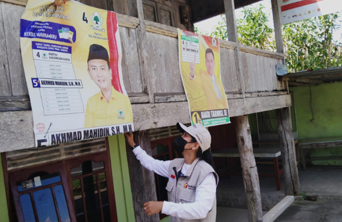 OKI, BERITAANDALAS.COM – Pengawas Tempat Pemungutan Suara (PTPS) Kelurahan Mangunjaya mencopot semua alat peraga kampanye (APK) di sekitar Kelurahan Mangunjaya Kecamatan Kayuagung Kabupaten Ogan Komering Ilir (OKI), Ahad (11/2/2024).