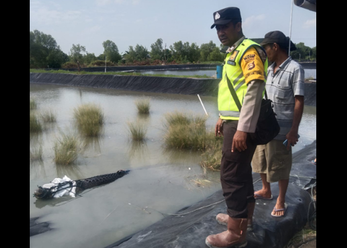 “Dapati ada buaya liar masuk ke tambaknya, Supriyadi langsung menghubungi kami, sehingga kita langsung datang ke lokasi. Kemudian bersama-sama warga menangkap buaya tersebut,” kata Aiptu Agus Sujana.