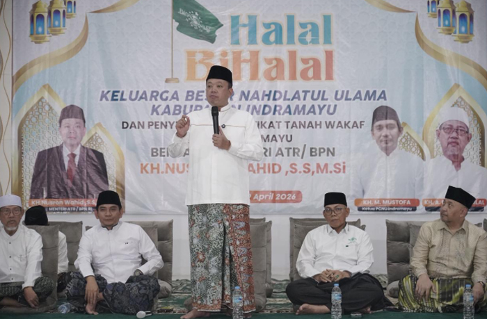 Pesan tersebut disampaikannya saat menghadiri acara Halalbihalal dan Penyerahan Sertipikat Tanah Wakaf Pengurus Cabang Nahdlatul Ulama (PCNU) Indramayu, Ahad (19/4/2026), di Kantor PCNU Indramayu.