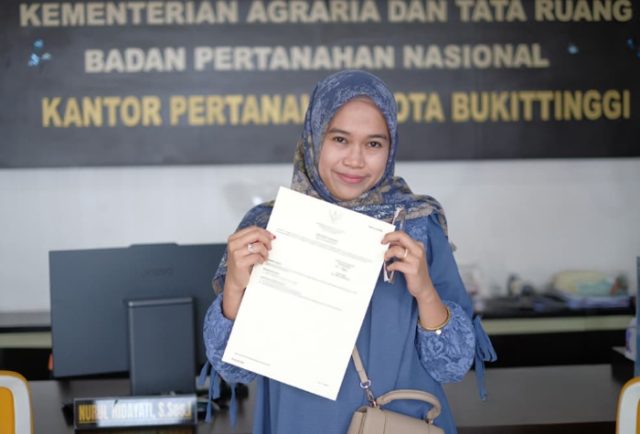BUKITTINGGI, BERITAANDALAS.COM – Penerapan Sertipikat Elektronik memberikan rasa aman dan ketenangan bagi masyarakat, terutama di musim penghujan yang rawan bencana. Hal ini dirasakan oleh pemohon layanan pertanahan di Kota Bukittinggi yang kini tidak lagi khawatir terhadap risiko kerusakan atau kehilangan sertipikat tanah berbentuk fisik.