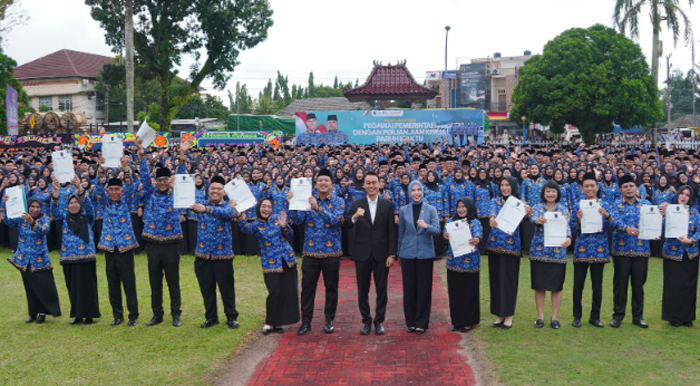 OGAN KOMERING ILIR, BERITAANDALAS.COM — Setelah puluhan tahun bekerja tanpa kepastian status, ribuan tenaga honorer di Kabupaten Ogan Komering Ilir (OKI) akhirnya memperoleh kejelasan. Pemerintah Kabupaten OKI resmi mengangkat 4.564 tenaga honorer menjadi Pegawai Pemerintah dengan Perjanjian Kerja (PPPK) paruh waktu.
