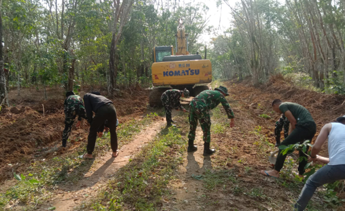 Satgas TMMD Kodim 0402/OKI Bersama Warga Gotong Royong Buka Akses Jalan Desa