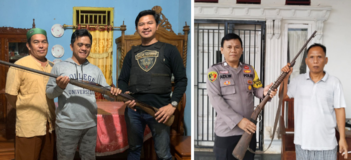 Sudah ada 5 pucuk serahan warga Desa Serigeni Lama, Tanjung Serang dan Teloko. Terdiri dari 2 senpira laras panjang jenis locok tanpa amunisi dan 3 senpira laras pendek.