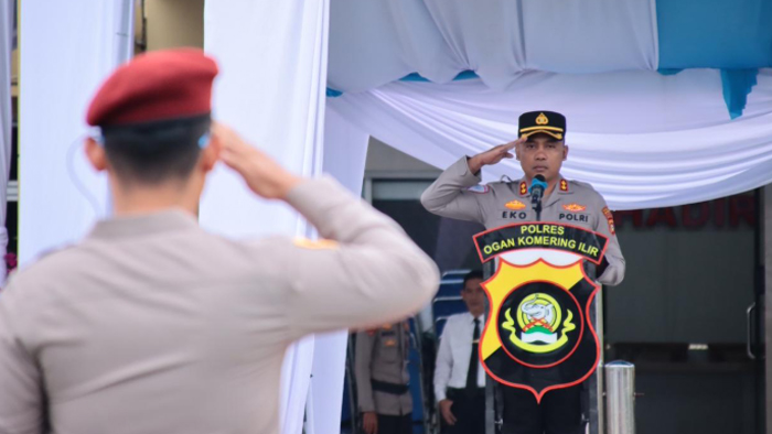 Upacara berlangsung khidmat dan dipimpin langsung oleh Kapolres OKI AKBP Eko Rubiyanto SH SIK MH selaku inspektur upacara.