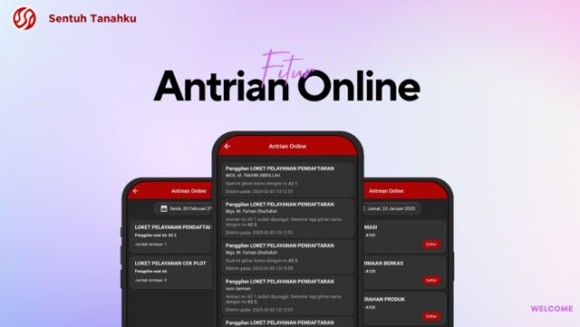 Menjawab kebutuhan tersebut, Kementerian Agraria dan Tata Ruang/Badan Pertanahan Nasional (ATR/BPN) menghadirkan aplikasi Sentuh Tanahku dengan fitur Antrian Online. Melalui fitur ini, masyarakat dapat memperoleh nomor antrean secara digital tanpa harus datang lebih pagi ke Kantah.
