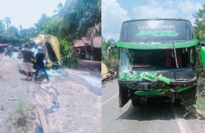 Mobil Tangki Diduga Angkut Minyak Ilegal Tabrak Bus Pariwisata di Bayung...