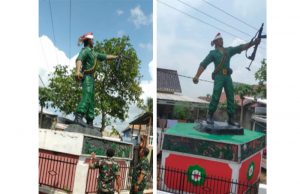 Kodim 0402/OKI Cat Ulang Monumen Patung Pejuang Serma Abdul Muis