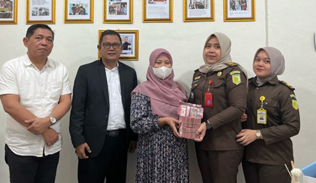 Penyerahan uang sebesar Rp 278.500.000 tersebut, dilakukan oleh istri tersangka di Kantor Kejaksaan Negeri OKI, dan disaksikan langsung oleh Jaksa Penuntut Umum, Kamis (15/5/2025).