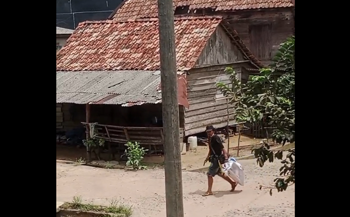 OKI, BERITAANDALAS.COM – Sebuah video berdurasi 27 detik memperlihatkan seorang warga membawa senjata api (senpi) sambil menenteng salah satu spanduk calon Bupati dan Wakil Bupati Ogan Komering Ilir (OKI) tengah berjalan di sekitar area Desa Sunggutan Air Besar, Kecamatan Pangkalan Lampam, viral di media sosial (medsos), Senin (11/11/2024).